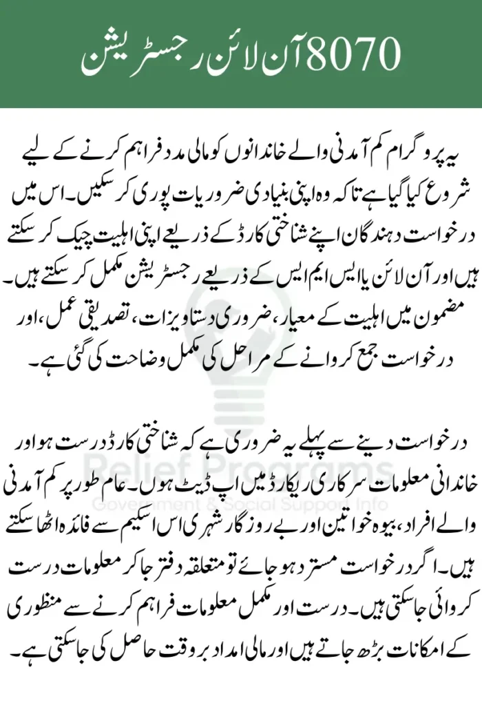 8070 Online Registration 2026 is a government-supported financial assistance registration process designed to help low-income families apply for relief using their CNIC through an online portal or SMS system. This article explains the eligibility criteria, required documents, CNIC verification method, and step-by-step application process so applicants can complete registration correctly and avoid rejection.