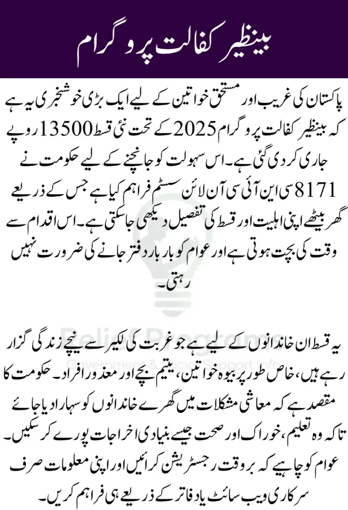 Quick Overview of Benazir Kafalat Rs 13500 in 2025