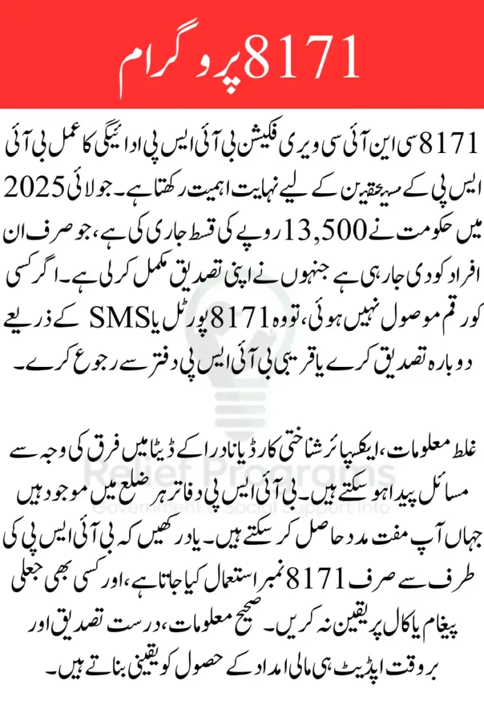 If you’re wondering whether your Rs. 13,500 installment has been released, it’s time to perform your CNIC verification. Understanding how to use the 8171 portal not only ensures you’re eligible, but also helps you track and confirm your BISP payment status with ease.