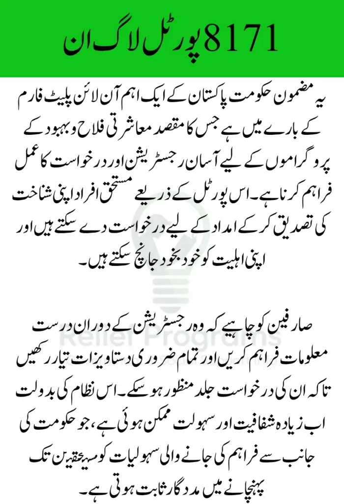 | Portal Website | 8171.bisp.gov.pk |