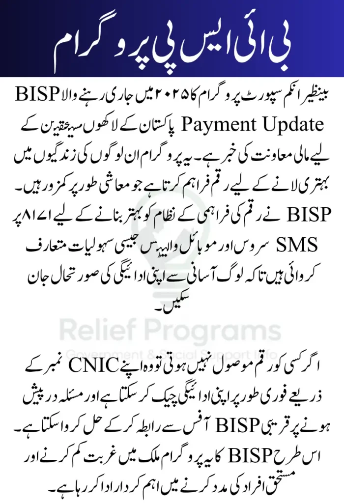 | Actions If Payment Missing | Contact local BISP office or helpline |