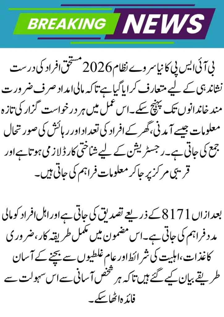 This system reduces fraud, speeds up verification, and allows new applicants to join easily. The BISP 8171 Dynamic Survey also gives previously excluded individuals another chance to apply.