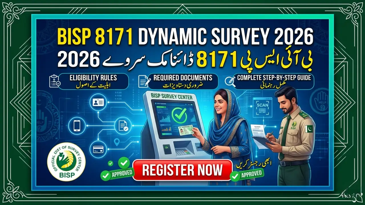 The BISP 8171 Dynamic Survey 2026 is a structured process introduced to register and verify deserving families for financial assistance in Pakistan. It uses CNIC verification, survey centers, and online status checks to ensure transparency and accurate data collection. This guide explains how to complete the BISP 8171 Dynamic Survey, including eligibility, required documents, and how to check your application status after registration.
