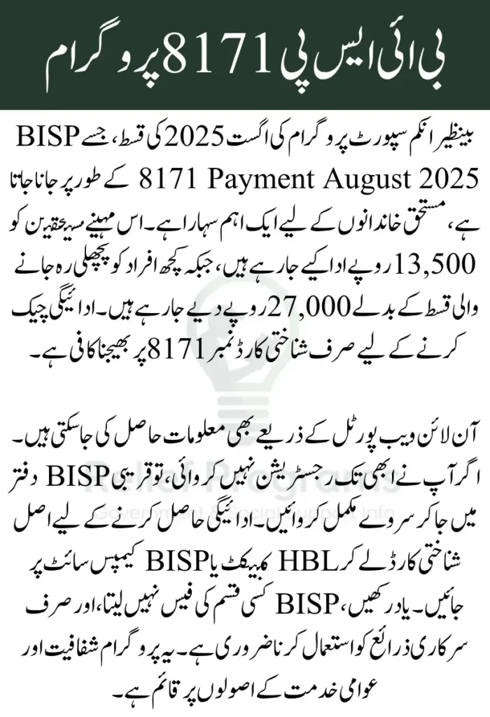 The BISP 8171 Payment has now officially started, bringing timely relief to millions of eligible families across Pakistan. This month’s installment of Rs. 13,500 is being disbursed through the Benazir Income Support Programme, with additional support for those who had pending or missed payments from earlier cycles.