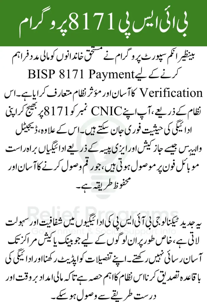 The Benazir Income Support Programme has been a vital lifeline for many low-income families across Pakistan. One of the key services it offers is BISP 8171 Payment Verification, which allows beneficiaries to confirm their payment status quickly and easily.