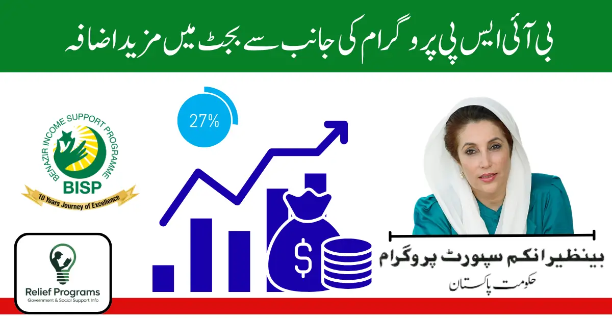 بینظیر انکم سپورٹ پروگرام (بِسپی) کا بجٹ 27 فیصد بڑھا دیا گیا ہے جس سے ملک بھر میں دس ملین خاندانوں کو مالی مدد دی جا رہی ہے۔ یہ اضافہ حکومت کی طرف سے غربت کے خاتمے اور معاشرتی بہبود کو بڑھانے کی کوششوں کا حصہ ہے۔ اس اضافے کی بدولت زیادہ مستحق خاندانوں کو امداد ملے گی جو معاشی دباؤ کا شکار ہیں۔