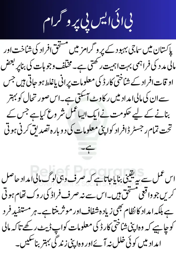 By participating in the reverification, beneficiaries protect their rights to assistance and contribute to the efficiency of Pakistan’s welfare system.