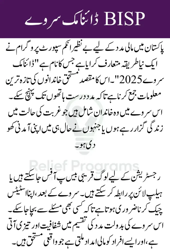 Registration for the BISP Dynamic Survey is primarily for families living under challenging financial circumstances who are either new applicants or already receiving aid and want to maintain their benefits. If your household income is unstable, or you’ve recently faced hardships like job loss or natural disasters, it’s important to register.