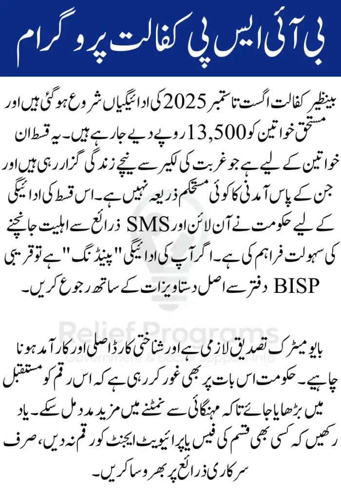 | Program | BISP Kafaalat August–September 2025 |