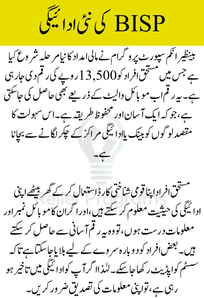 BISP New Payment has made it easier than ever for low-income families in Pakistan to receive government financial support without the long wait or complicated paperwork. With the latest payment cycle offering Rs. 13,500, eligible individuals can now check their payment status online and receive their funds directly into a digital wallet. This update aims to increase accessibility, reduce delays, and empower beneficiaries to manage their money more safely.