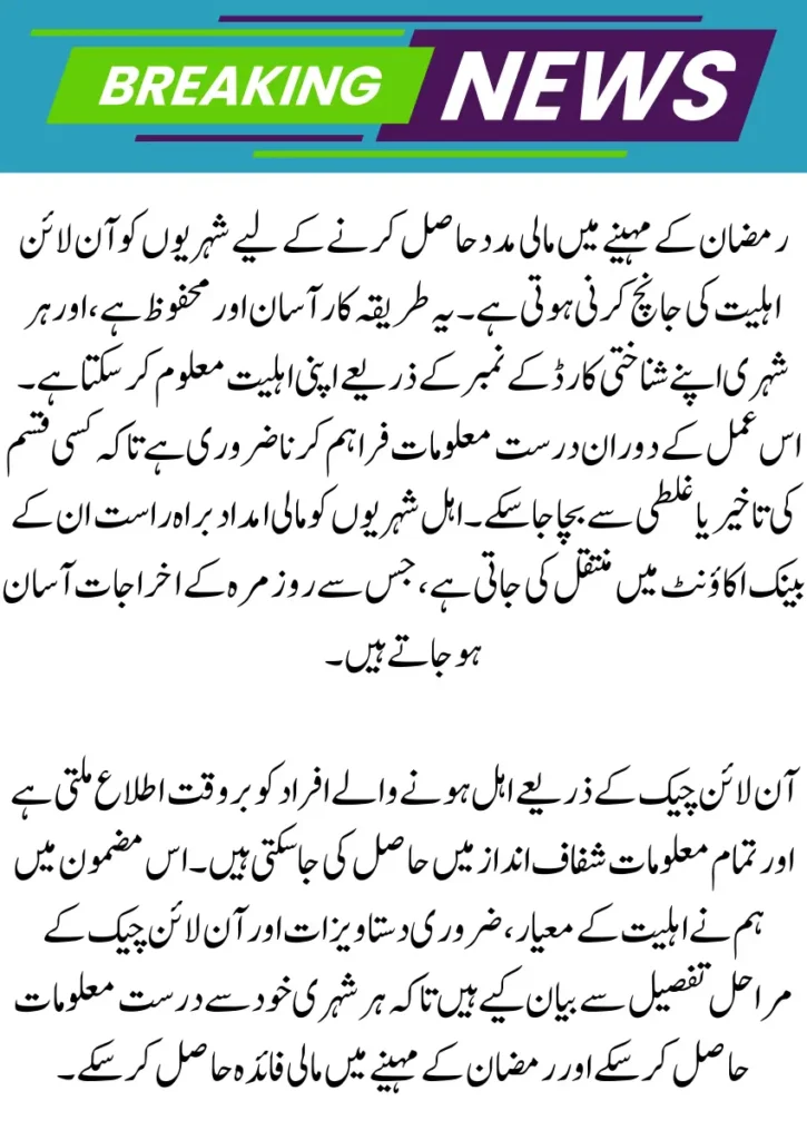 Checking eligibility for the 8558 Ramzan Package is simple if you follow these steps: