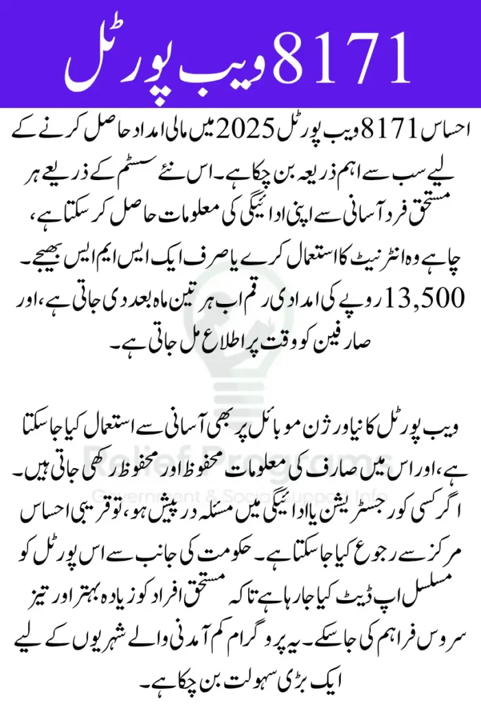 In 2025, the Ehsaas 8171 Web Portal continues to be the government’s central platform for delivering financial aid to deserving families in Pakistan. With economic challenges still affecting millions, the portal has been redesigned to ensure easier access to vital support, including the latest installment of Rs. 13,500 per eligible household.