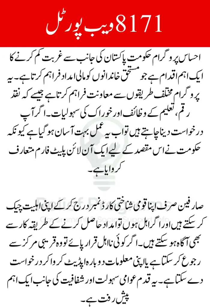 | Portal Name | Ehsaas Program 8171 Web Portal |