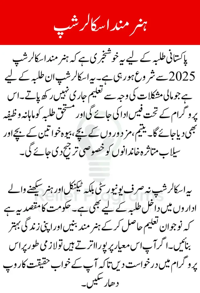 Education and skill-building are the foundation of a strong future, especially for countries like Pakistan, where the youth make up a large portion of the population. Recognizing this, the government has announced a brand-new initiative, the Hunar Mand Scholarship 2025, which officially starts from October 2025.