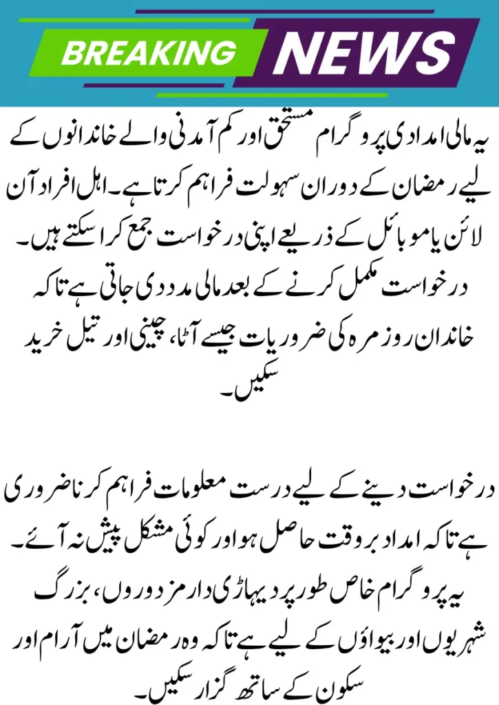 The program provides vital financial relief during Ramadan, enabling families to buy essential food items. It reduces economic stress and promotes fairness through CNIC-based verification, making it easier for eligible applicants to receive assistance on time.