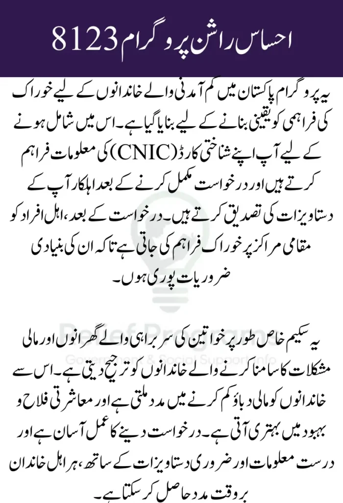 Before applying, it is essential to confirm that you meet the eligibility criteria of the Ehsaas Rashan Program 8123. The program primarily targets families living below the poverty line or those severely affected by economic challenges. Key requirements include: