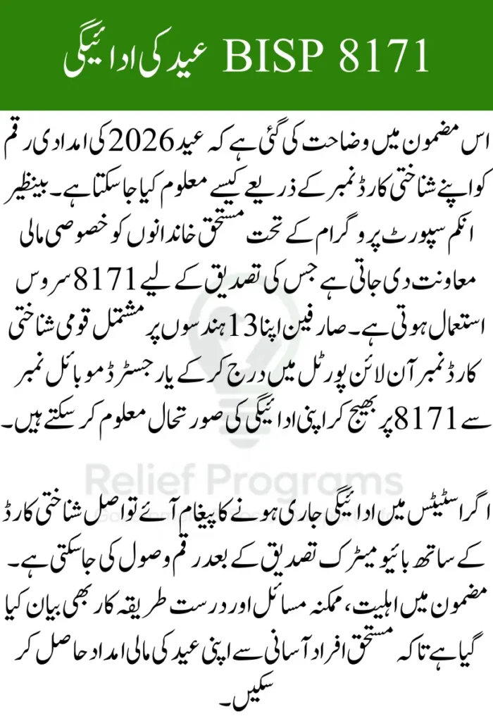 BISP 8171 Eid Payment 2026