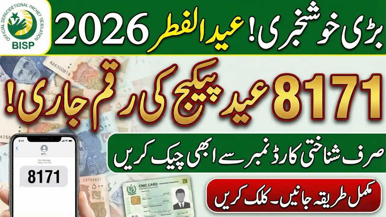 If you want to Check BISP 8171 Eid Payment for 2026 using your CNIC, the process is simple and officially designed for quick verification. Eligible families under the Benazir Income Support Programme can confirm their Eid assistance status either through the 8171 SMS service or the online CNIC portal.