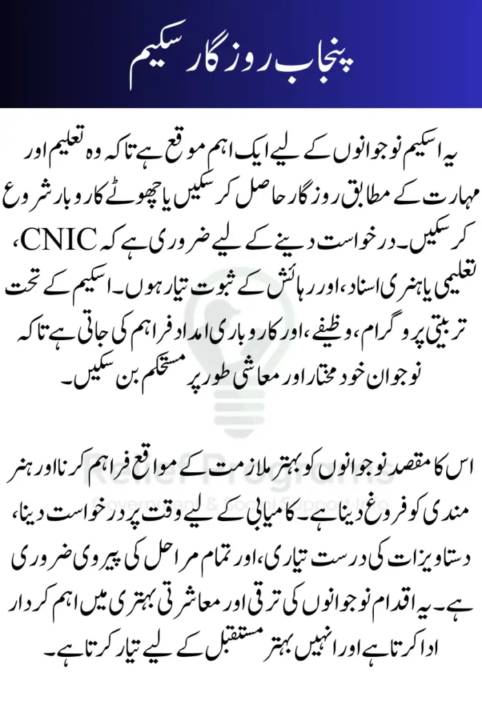 Designed to be fully online, the scheme simplifies the registration process for applicants. It caters to fresh graduates as well as individuals who are already part of the informal workforce but are seeking more stable employment. By connecting job seekers with suitable programs, the Punjab Rozgar Scheme strives to reduce unemployment and encourage entrepreneurship.